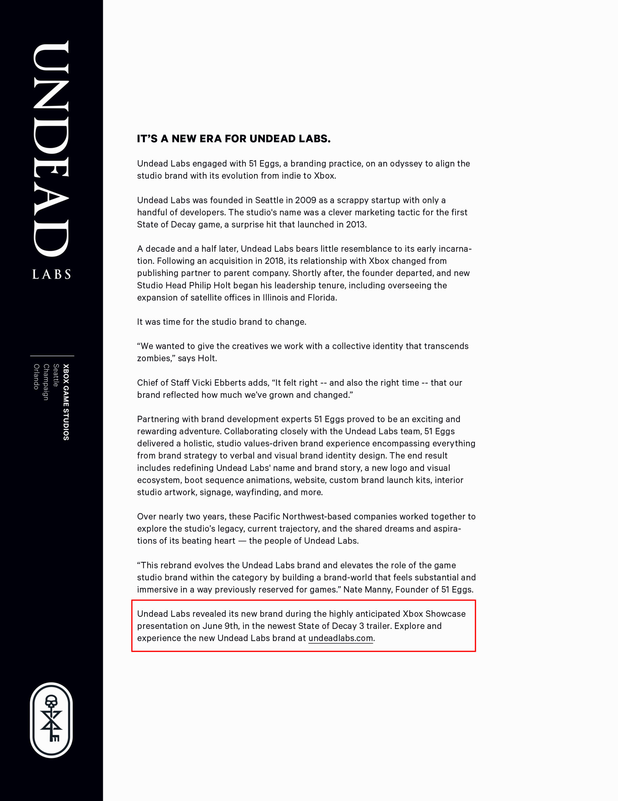 تم رصد ذلك من خلال تتبع رابط للبيان الصحفي “Press Kit” الخاص باللعبة والذي عثر عليه في موقع الاستديو الرسمي. كما تشاهدون في الاسفل، صور تظهر الشعار الجديد للاستديو بجانب البيان الخاص بالعرض الجديد للعبة State of Decay 3.