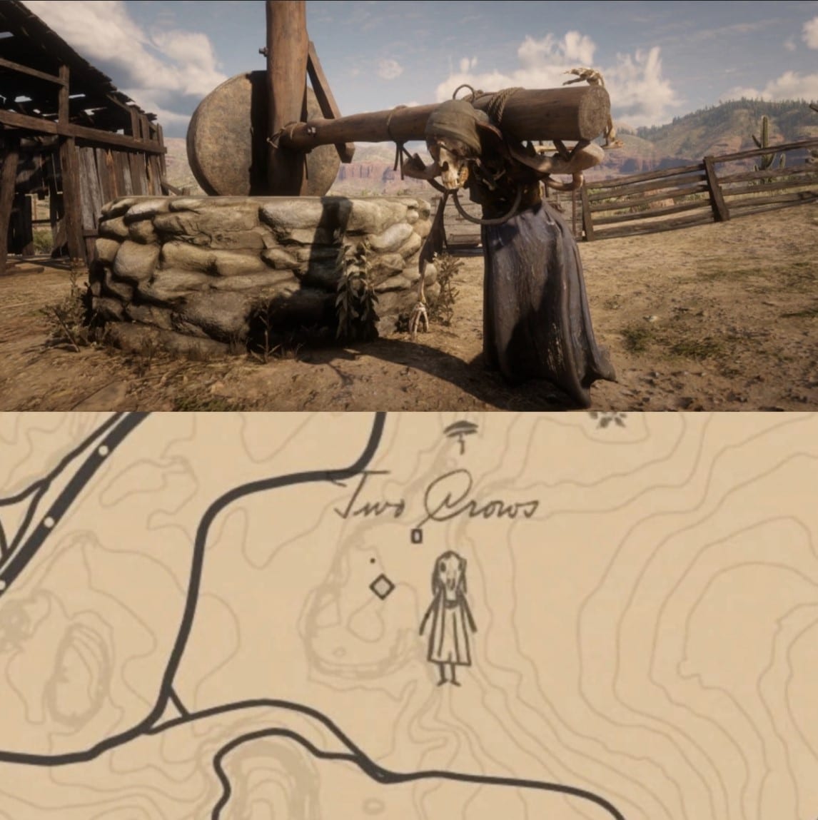 يمكن العثور على السيدة الغريبة في “نيو أوستن” إلى الشرق من محطة “ميرسر” وشمال غرب بحيرة “دون خوليو” في “تو كرو،” وفي موضع مثير للاهتمام، توجد مزرعة متهالكة وهيكل عظمي لامرأة مربوطة إلى مطحنة خيول، حيث يبدو أنها أجبرت على العمل حتى الموت.