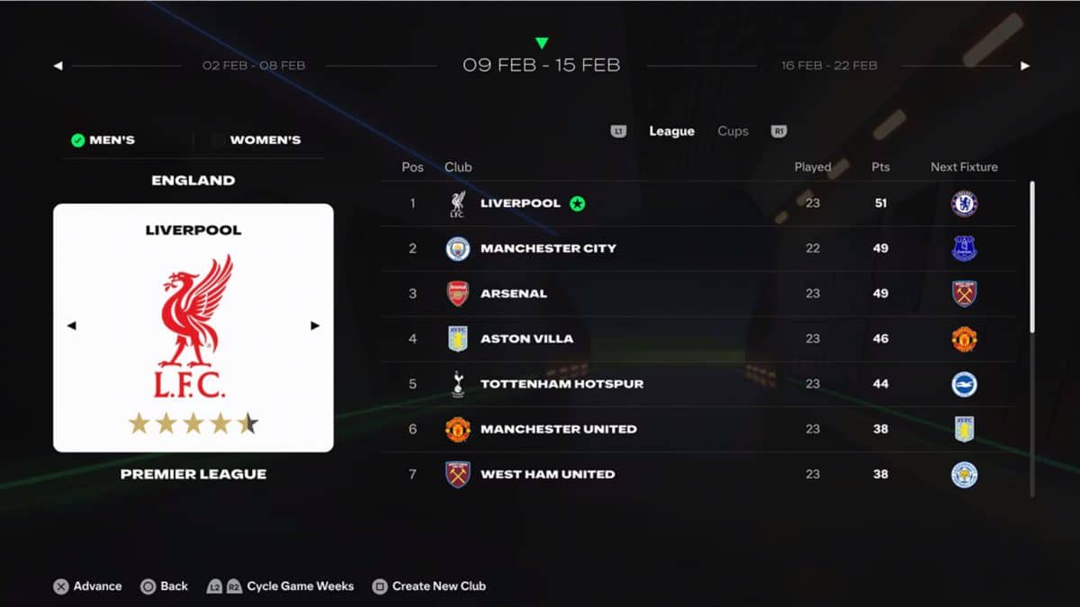 تمثل كل نقطة مباشرة النتائج الحالية لأبرز المباريات التي حدثت بين أقوى وأهم الفرق، يشمل ذلك الأهداف المسجلة والانتقالات والبطولات ومستوى اللاعب حتى الإصابات المهمة لأبرز اللاعبين ستكون موجودة كحدث في الطور وتشمل 10 دوريات (6 منها للرجال و 4 للنساء) و 12 بطولة كأس.