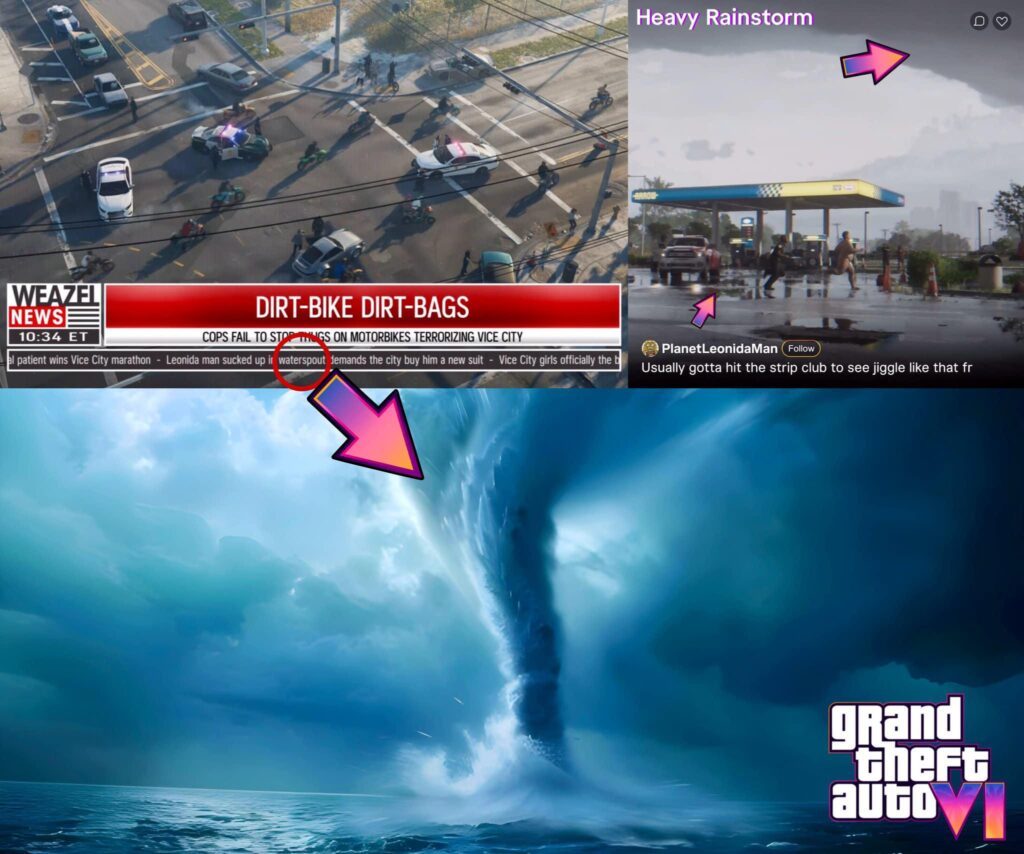ربما تكون هذه تلميحات الى ان اللعبة ستقدم تقلبات مناخية حية، لكن هذه المرة ستعكس واقعية المناخ لمقاطعة ليونيدا التي تتميز بالفعل بهذا النوع من الاعاصير والزوابع الموسمية.