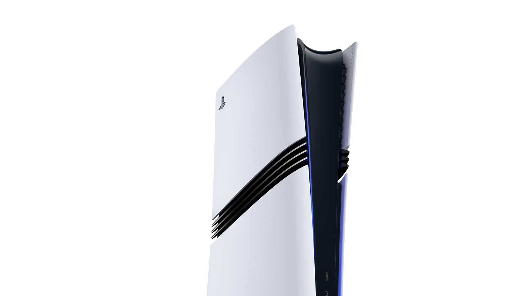 هذا يعني ان المنطقة البيضاء العليا والسفلية على سطحي الجهاز ما زالت ثابتة ومطابقة في الحجم لتلك المتواجدة في جهاز PS5 Slim. وهذا سيمكنك من استخدام جميع اغطية الاخير على جهاز PS5 Pro دون اي مشاكل، بجانب امكانية استخدام محرك الاقراص الذي يباع بشكل منفصل للجهازين.