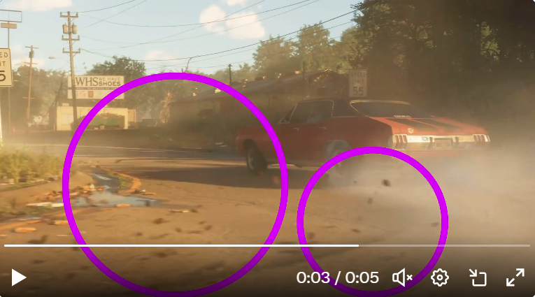 ايضاً، احد مشاهد المطاردة الذي ظهر في العرض الاول يمكن ان نرى كيف تتطاير الاتربة والغبار وكذلك اوراق الاشجار التي تتفاعل بشكل واقعي ديناميكي مع حركة المركبة خلال المرور من فوقها في احد الشوارع.