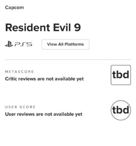 بينما تتكاثر الشائعات حول وجود لعبة Resident Evil 9 تحت التطوير ظهرت اليوم وبشكل مفاجئ صفحة اللعبة على منصة Metacritic المتخصصة في رصد تقييمات العاب الفيديو.