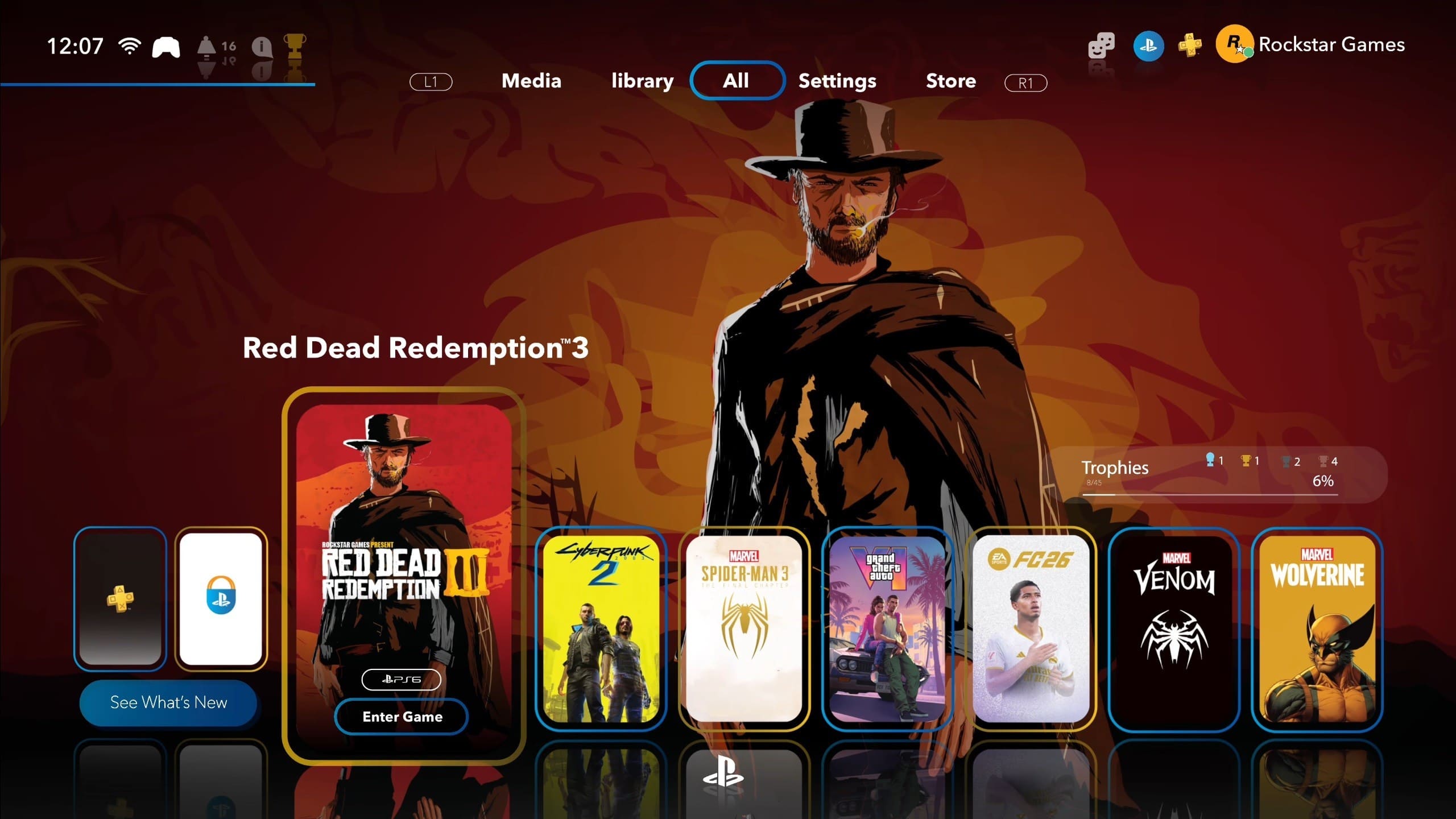 ايضاً، نرى هناك ايقونة للعبة Red Dead Redemption 3 التي ما زالت لم يتم تأكيدها حتى الان وكذلك لعبة Spider-Man 3 التي يتوقع ان تكون ضمن عناوين الاطلاق للجيل القادم واخيراً لعبة CyberPunk 2 التي تم تأكيد وجودها بالفعل تحت التطوير.