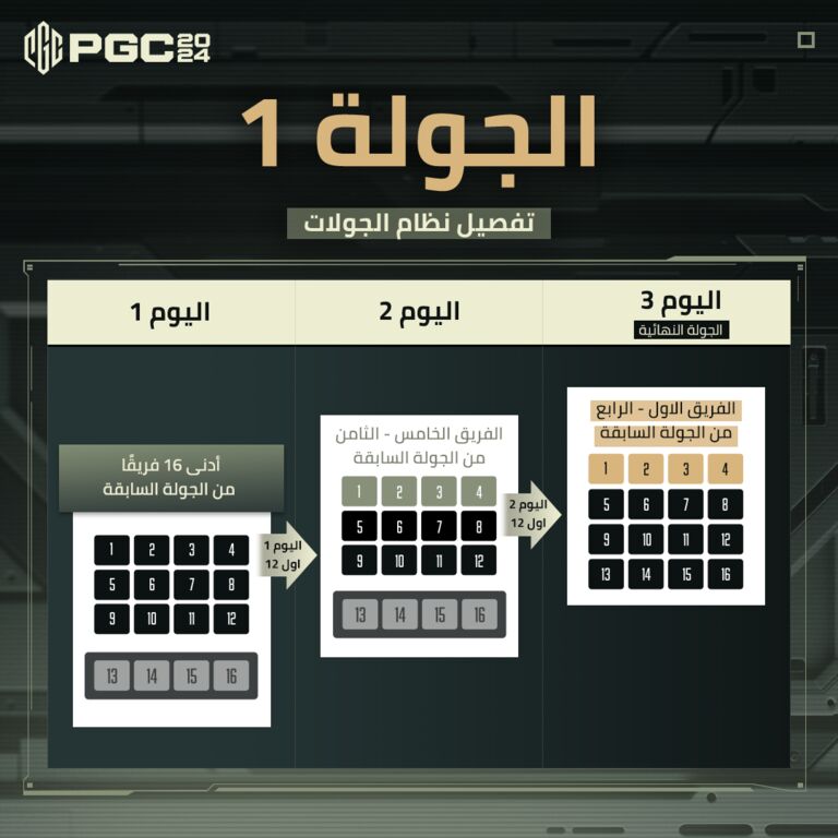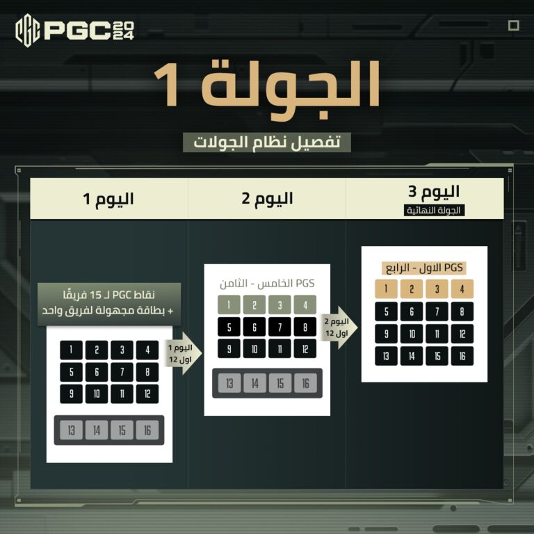 يستمر هذا التقدم خلال الجولة الثانية والثالثة، مع المشاركات الجديدة بناء على ترتيب الجولات السابقة. في نهاية الجولة الثالثة، سينتقل افضل 16 فريق حصلوا على اكبر عدد من النقاط في جميع نهائيات الجولات الى نهائيات PGC 2024 الكبرى.