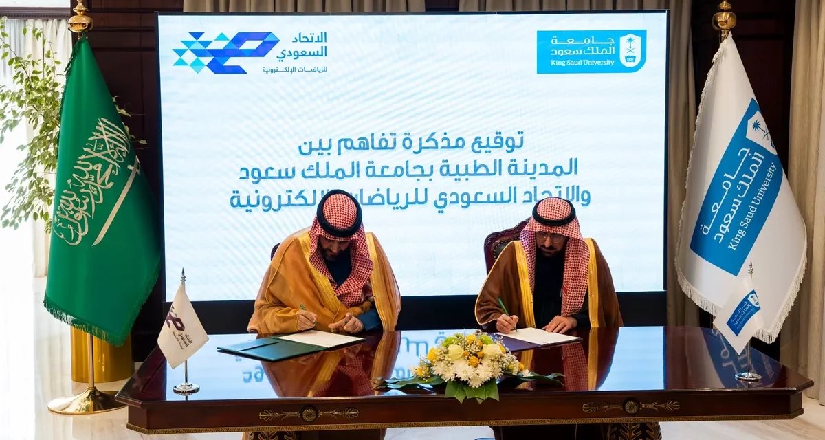 وقّع الاتحاد السعودي للرياضات الإلكترونية والمدينة الطبية بجامعة الملك سعود مذكرة تفاهم للتعاون في تنفيذ مبادرات الصحة البدنية والنفسية، وتطوير برامج صحية، وإجراء أبحاث متقدمة في هذا المجال.