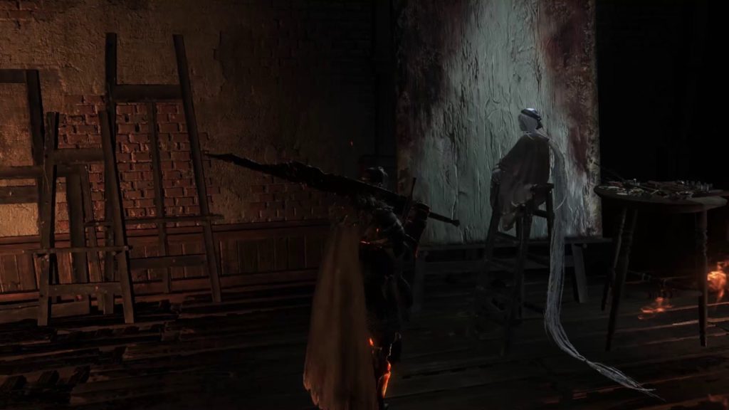 بعض لاعبي الإضافة الثانية لـ دارك سولز 3 يشاهدون رسامة في الاضافة ويستغربون منها و لا يعلمون ما قصتها و ماذا ترسم وماذا يريد Gael منها.