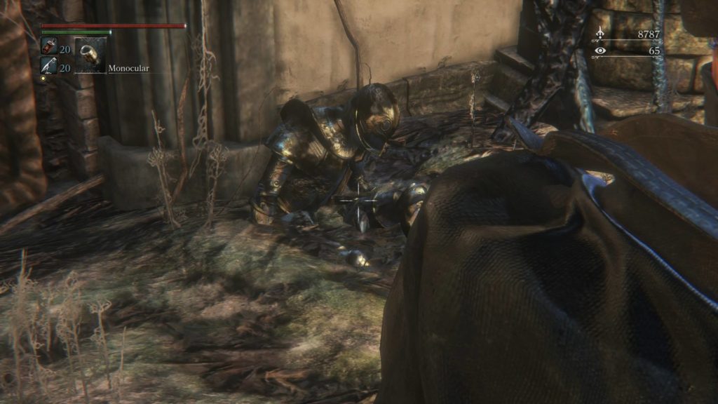 كان أمره محيّر وغريب بنفس الوقت للكثير ولو نظرنا لشكله و ملابسه فهي تتشابه بشكل كبير جدّاً مع هيئة الناس و الأشخاص بعالم Bloodborne وسلاحه مفضل هو Crossbow رغم عدم وجود بنادق في عالم السولز