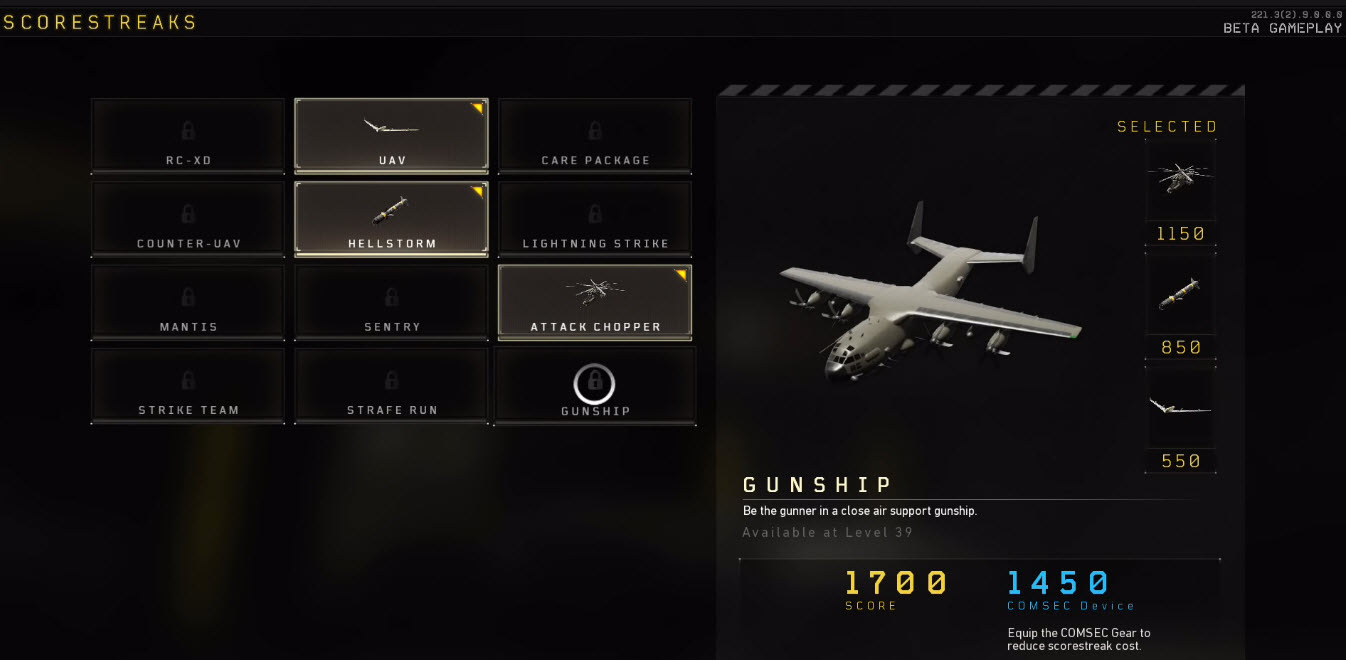 ايضا Scorestreak هي الاخرى عادت من جديد و سيكون هناك 12 منها تبدا بسيارة RC XD الصغيرة و تنتهي بطائرة Gunship نعم هذا صحيح طائرة Gunship عادت من جديد و لكن لاكون صريح معكم لم اتمكن من الوصل اليها حتى الان و قد لا اصل اليها خلال مرحلة البيتا كونها تحتاج الى صمود اطول من اجل الحصول عليها.