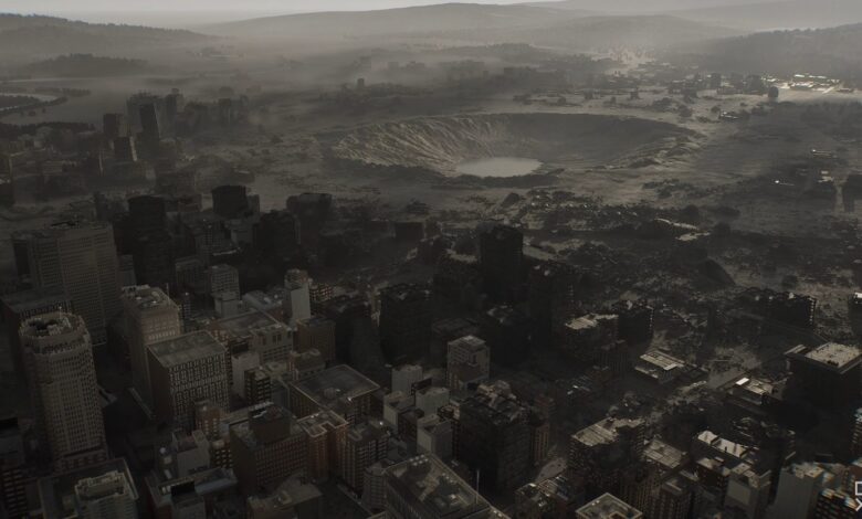 تأخذنا أحداث اللعبة إلى عام 2028، أي بعد 30 عامًا بالضبط من الضربة الصاروخية التي دمرت مدينة راكون سيتي في نهاية أحداث Resident Evil 3: Nemesis، وهو ما يفسر الفوهة الهائلة التي ظهرت في العرض الدعائي.