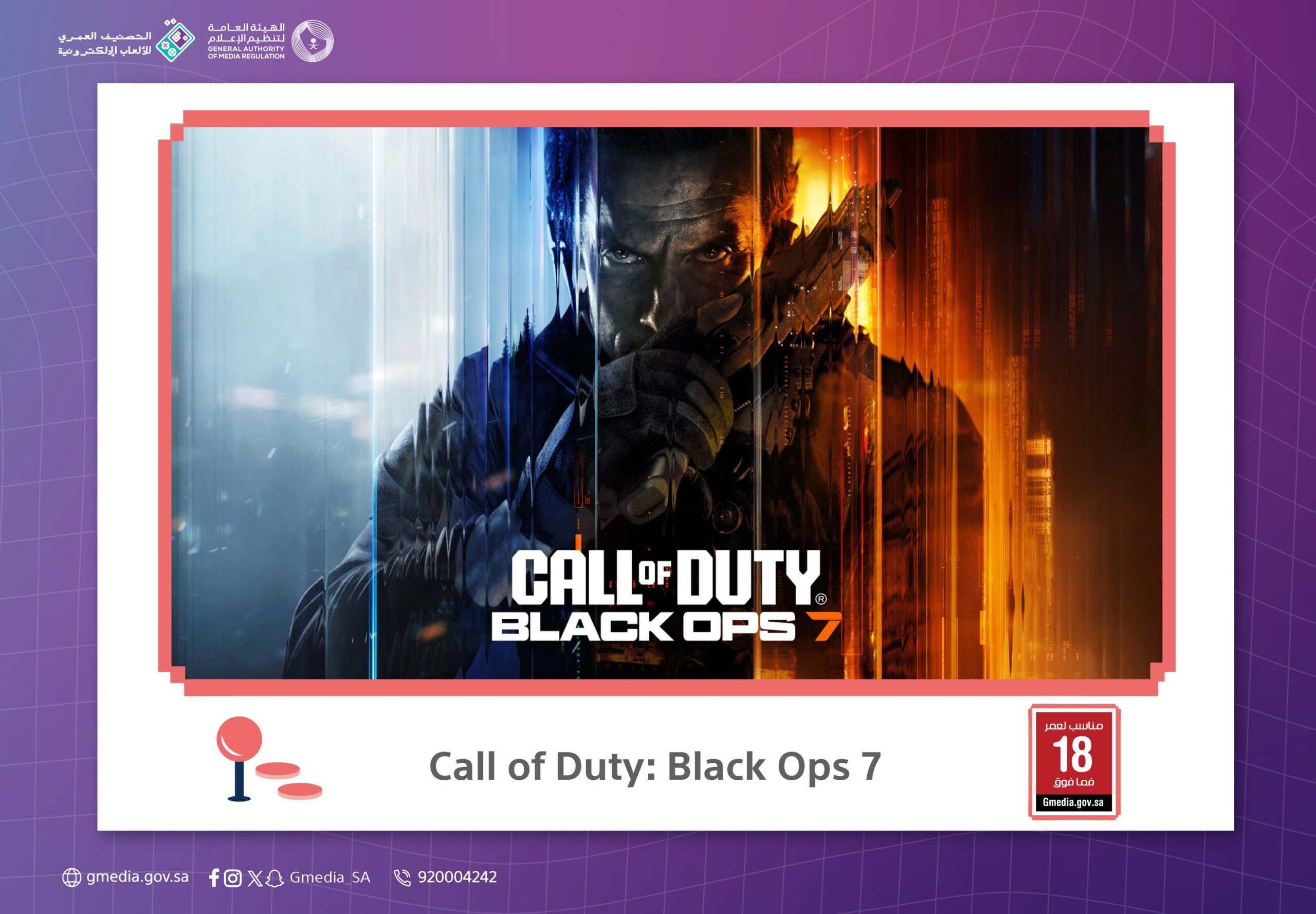 حصلت لعبة التصويب القادمة Call of Duty: Black Ops 7 على تصنيف عمري مناسب للأعمار 18 سنة فما فوق من قبل الهيئة العامة لتنظيم الإعلام في السعودية، وهذا التصنيف يؤكد أن اللعبة ستحافظ على طبيعتها العنيفة والدموية التي اشتهرت بها السلسلة، وهذا يعني فسح اللعبة بشكل رسمي.