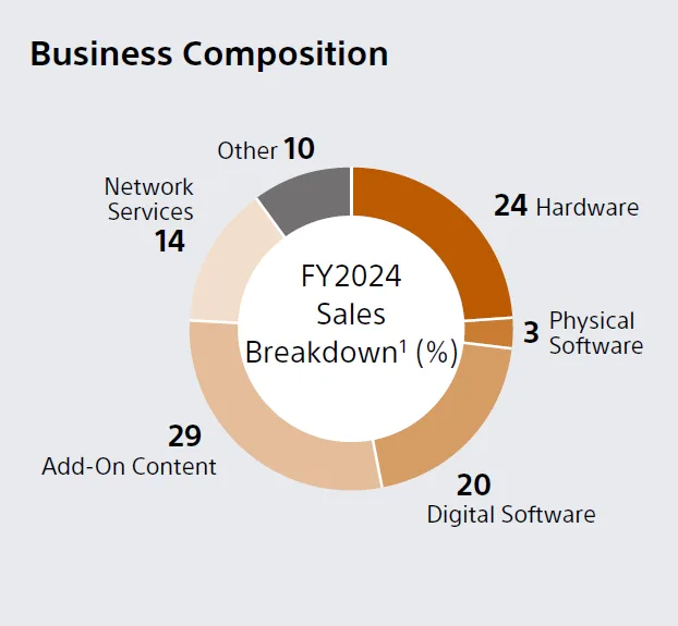 تُظهر البيانات المالية الصادرة عن سوني ونقلًا عن حساب مطلع، النسب المئوية لمساهمة كل مصدر في إجمالي إيرادات قطاع الألعاب، وهي كالتالي: