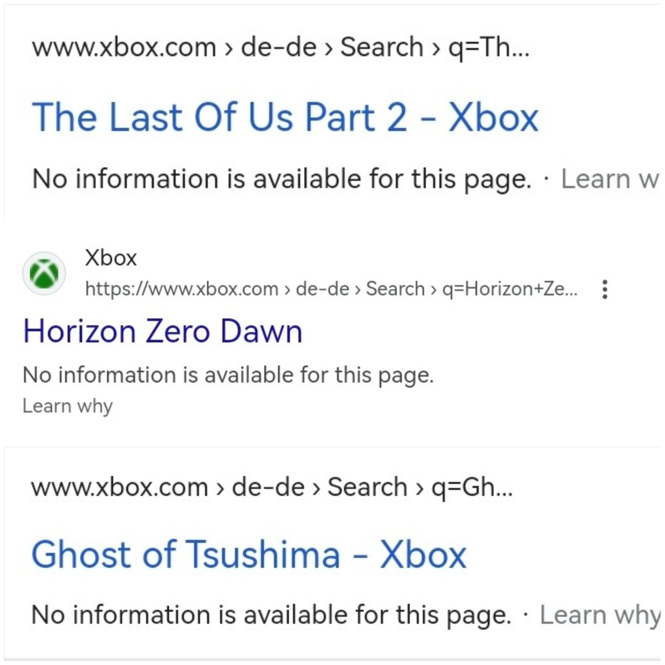 بدأت القصة عندما لاحظ لاعبون ومواقع متخصصة في الألعاب أنه عند البحث في جوجل عن عناوين مثل The Last of Us Part 2 و Horizon Zero Dawn و Ghost of Tsushima مع إضافة كلمة Xbox، تظهر في مقدمة النتائج روابط مباشرة لموقع xbox.com.