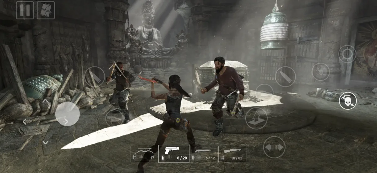 - نظام القتال المحسن حيث تم تطوير نظام تصويب واشتباك يتناسب مع شاشات اللمس، مع الحفاظ على حركات لارا كروفت البهلوانية الشهيرة.