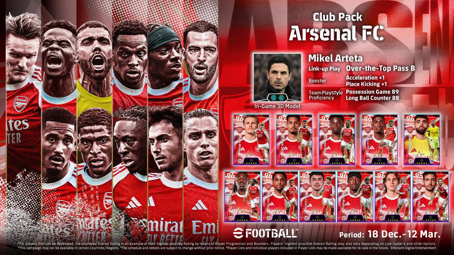 كشفت الحملة عن حزمة النادي اللندني، التي تضم التشكيلة الأساسية المكونة من 11 لاعباً، بقيادة المدير الفني “ميكيل أرتيتا”. يتميز أرتيتا بقدرة “اللعب الجماعي” (Link-Up Play)، مما يتيح للمدربين مرونة تكتيكية عالية في بناء الهجمات.