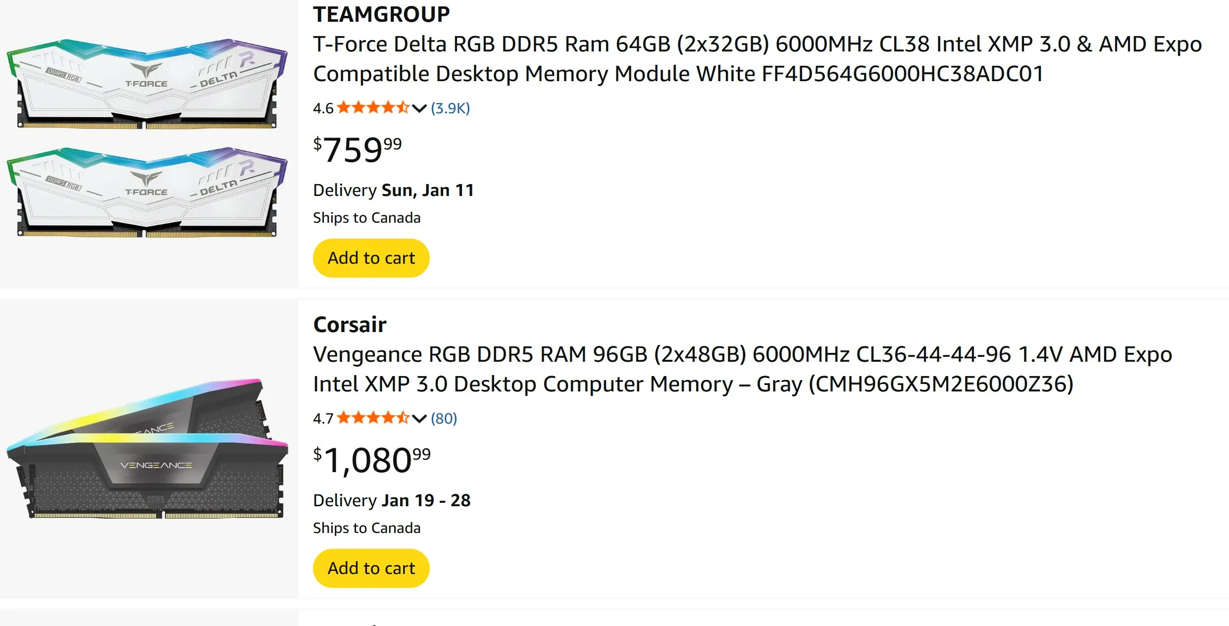 - أطقم 128GB (لمحطات العمل): وصلت إلى قرابة 1,600 دولار، ما يعادل سعر جهازي PlayStation 5 Pro أو جهاز MacBook Air حديث.
