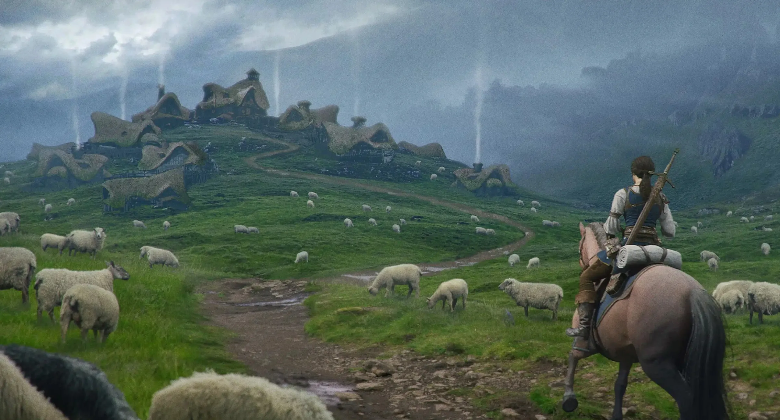 إلى جانب ذلك، تظهر قرية مستنقعية تُدعى على ما يبدو Hamlet، ويُرجّح أنها مسقط رأس الشخصية الرئيسية. اللافت أن الرسومات تعرض نسختين من المكان نفسه: واحدة في حالته الطبيعية، وأخرى بعد تعرّضه لفيضان، ما يوحي بتغيّرات بيئية أو سردية تؤثر على العالم مع تقدم الأحداث.