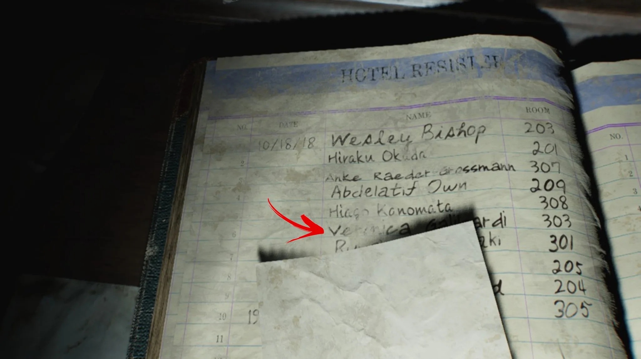 التلميح الأبرز كان عندما تمكن لاعب من استخدام وضع التصوير للتدقيق في قائمة أسماء الزوار الموجودة على مكتب الاستقبال في منطقة فندق Wrenwood، حيث عثر على اسم يدعى فيرونيكا غاليباردي.