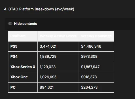 كشفت البيانات الداخلية التي ظهرت مؤخراً عبر تسريبات مجموعة ShinyHunters عن تفاصيل دقيقة وغير مسبوقة حول الأداء التجاري وقاعدة اللاعبين للعبة GTA Online. بعيداً عن تفاصيل الاختراق، تقدم هذه الجداول الإحصائية نظرة عميقة ومباشرة للمحرك الاقتصادي الأضخم في صناعة الألعاب، وتؤكد تفوقاً كاسحاً لمنصات سوني.
