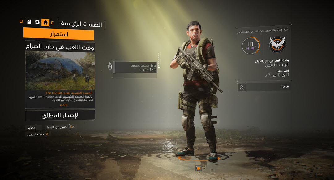 مع اقتراب موعد اطلاق لعبة The Division 2 على الاجهزة المنزلية و الحاسب الشخصي و الذي سيكون منتصف مارس القادم فقد شاركنا فرع الشرق الاوسط لشركة يوبيسوفت اليوم اولى الصور للنسخة العربية للعبة و التي تظهر ترجمة متقنة لقوائم اللعبة المنوعة.