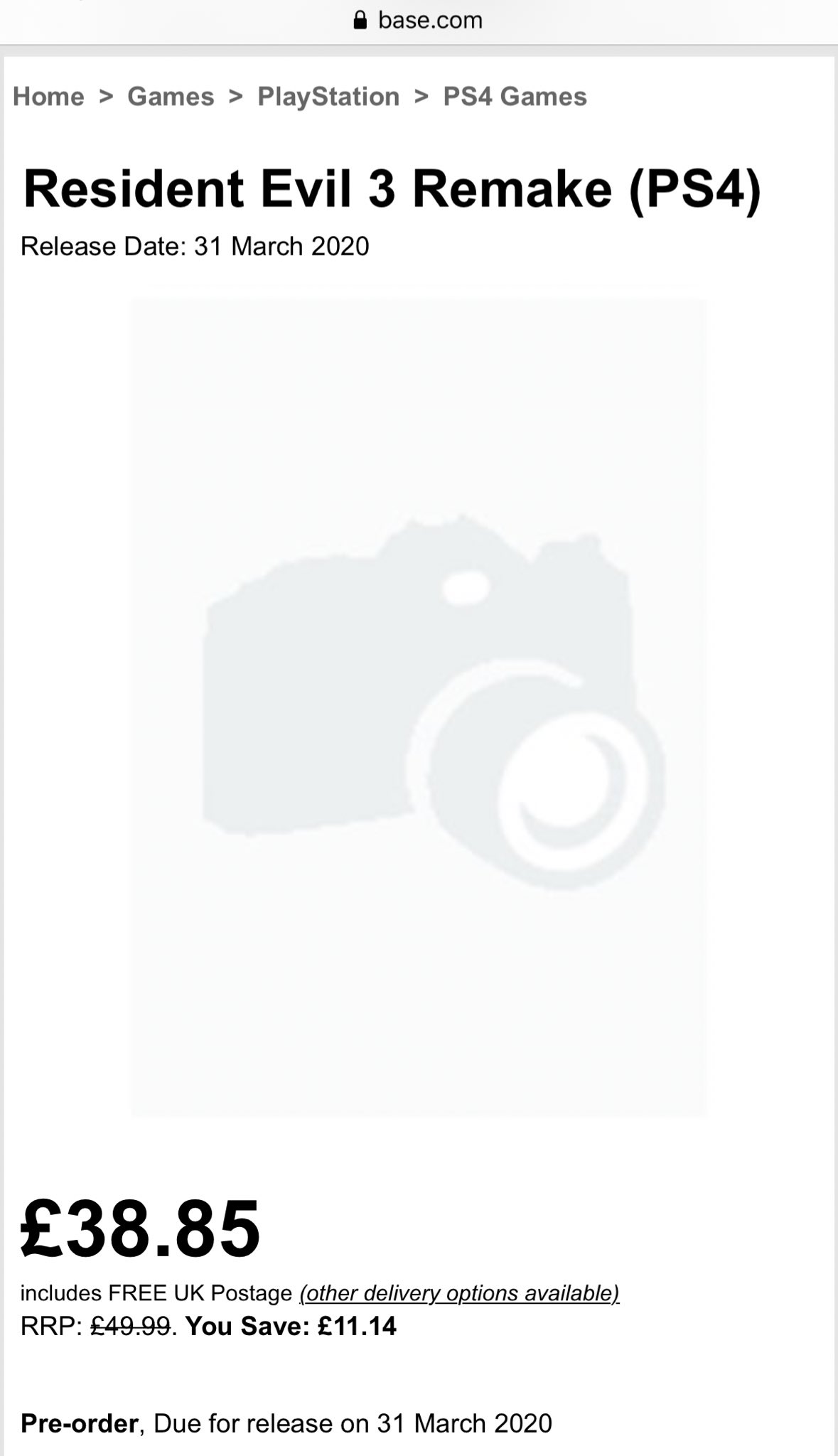 متجر Base الالكتروني و الذي يعرض كافة المنتجات للبيع ارفق ريميك لعبة Resident Evil 3 في قائمة مبيعاته واضعا سعر الاطلاق يرافقه موعد صدورها الذي يعتبر منطقيا نوعا ما كما تشاهدون ادناه في الصورة.