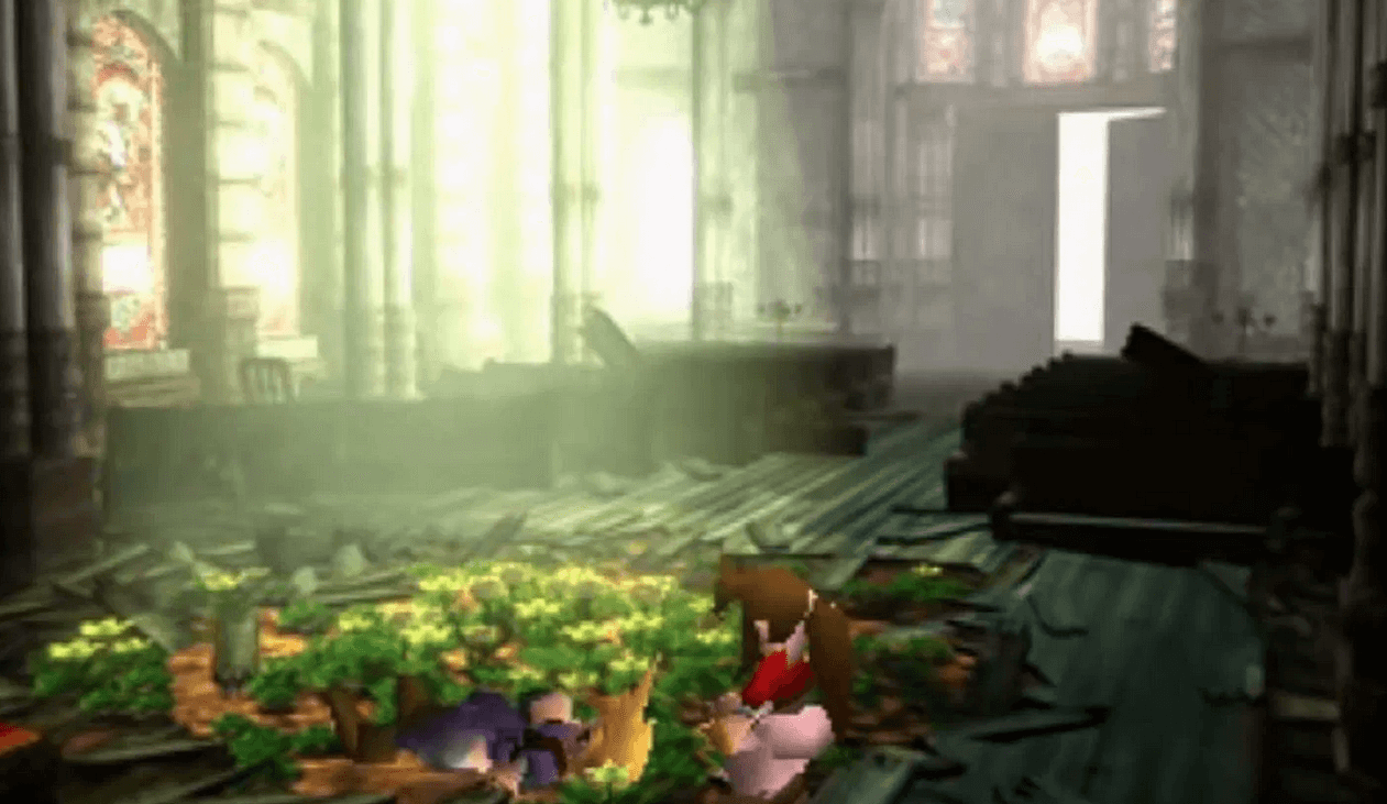 تعتبر أيضاً كنسية أَيريث أحد الأماكن المُميزة في لعبة فاينال فانتاسي 7، فعلى الرغم من أنّها مُحطّمة إنما تعتبر جميلة جداً خاصةً بسبب الأزهار التي زرعتها أَيريث وبسبب الفتحة بالسقف التي يأتي منها ضوء الشمس. في النسخة المُطوّرة رأينا التطور الضخم الذي وصلنا إليه بقوة الرسومات وكيف جعل هذا المكان يبعث بالحياة.