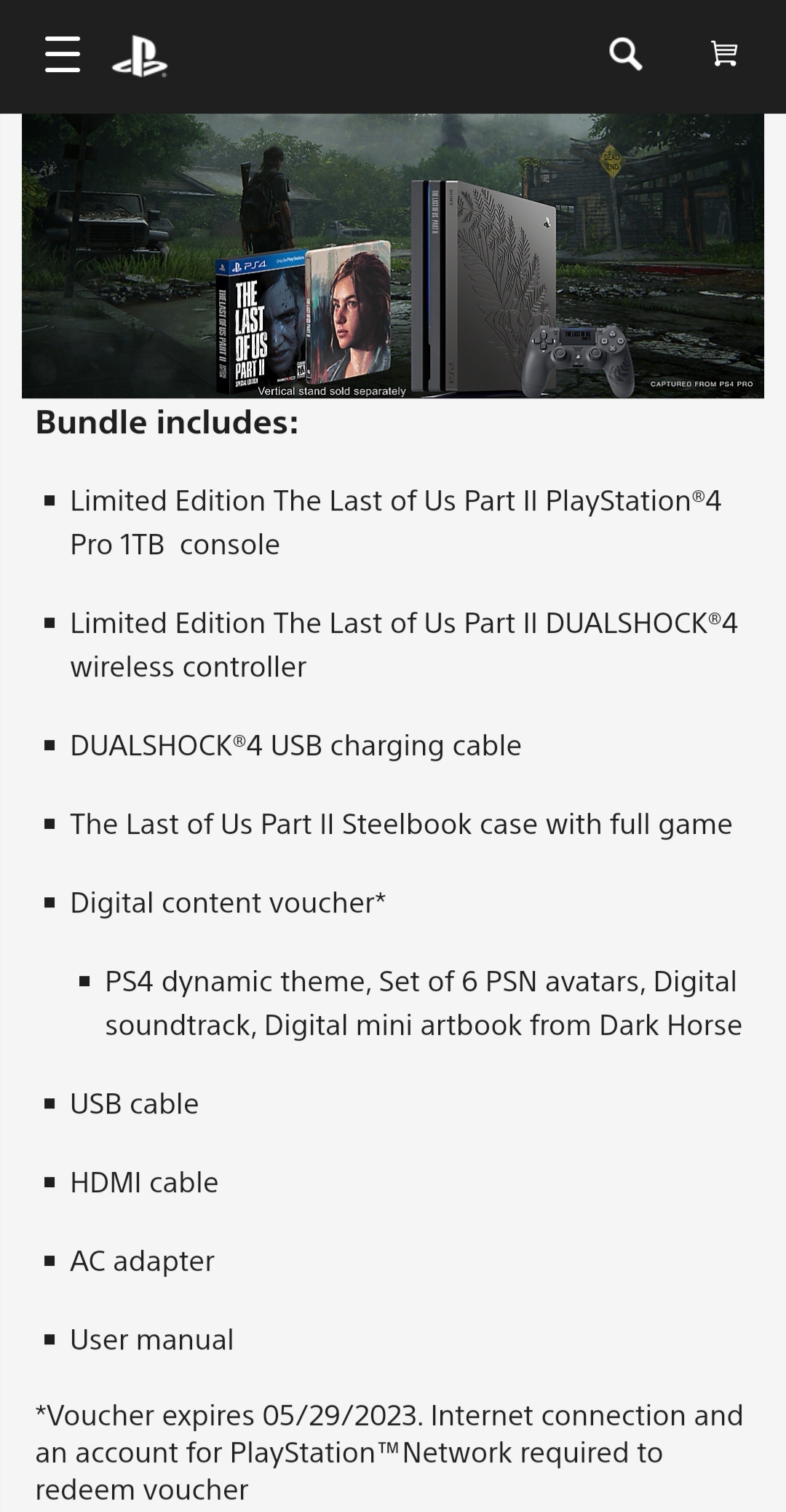 جهاز بلايستيشن 4 برو نسخة The Last of Us 2 يتوفر للطلب المسبق بسعر 400 دولار حيث يحتوي الصندوق على جهاز بلايستيشن 4 برو و وحدة تحكم واحدة بجانب نسخة فيزيائية للعبة (النسخة العادية) بالاضافة الى كود يمكنك من خلاله الحصول على ثيم ديناميكي لجهاز البلايستيشن 4 و بعض الرموز (افتار) المقتبسة من شخصيات اللعبة ويمكنك عمل طلب مسبق للحزمة من هنــا.