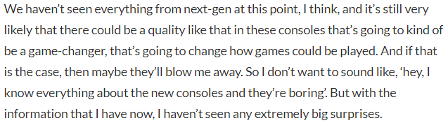 { and it’s still very likely that there could be a quality like that in these consoles that’s going to kind of be a game-changer, that’s going to change how games could be played. And if that is the case, then maybe they’ll blow me away. }