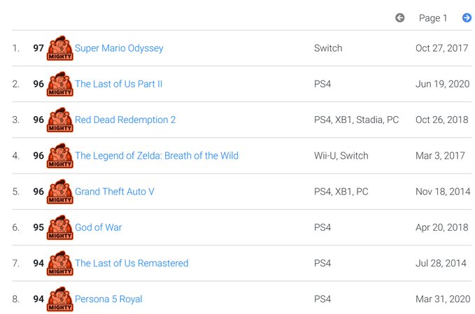 يبقى الان موقع Metacritic الموقع الاول من حيث الشهرة الخاص بتجميع مراجعات الالعاب و انتاج متوسط التقييمات, حيث انه في هذا الموقع ما زالت لعبة Red Dead Redemption 2 متفوقة بمتوسط تقييمات بلغ 97, فهل يا ترى ستتربع لعبة ذا لاست اوف اس 2 على عرش التقييمات هناك ايضا..!