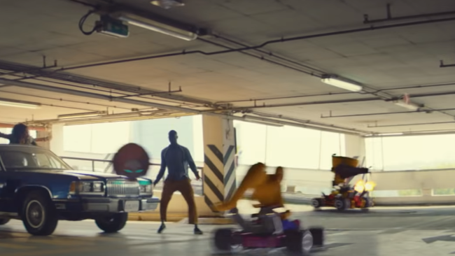 عند التدقيق تجدون القناع يسار الصورة امام المركبة مباشرة, يظهر بشكل سريع وخاطف بحركة محكمة من سوني لعدم لفت انتباه اي لاعب.