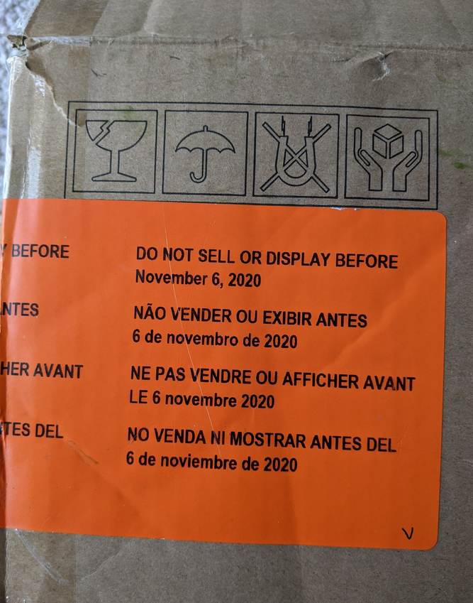 صحفي موقع The Verge توم وارين شاركنا الصورة الموجودة بالأسفل وقال أنّهُ حصل عليها من مالك هذا الصندوق. صورة وحدة تحكم الاكسبوكس الجديدة تحتوي على ملصق يقول “لا تُباع ولا تُستعرض قبل 6 نوفمبر”. بالتأكيد هذا لا يعني أنّ الاكسبوكس سيريس اكس سيصدر في هذا التاريخ لكنه أمر محتمل جداً.