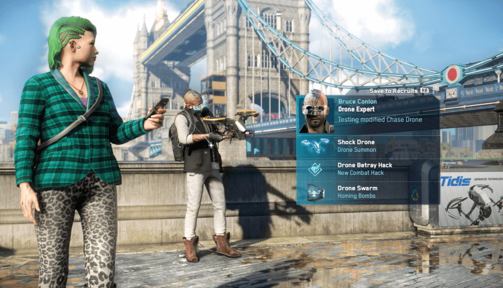 حسناً، هناك عدة أشياء، أولاً، لا يمكنك ترقية او إحراز تقدم بالشخصيات. أيّ قدراتهم ستبقى كما هي ولن تتمكن من ترقيتها او فتح ترقيات جديدة ولكن التقدم يكون إلى منظمة DeadSec وليس الأشخاص الفرديين. ستعثر بالعالم على نقاط تقنية ويمكنك استخدامها لترقية القدرات المختلفة وترقية الاختراقات. الشخصيات الجديدة التي تقوم بتجنيدها تأتي أحياناً مع سلاح خاص بها فعلى سبيل المثال، يمكنك العثور على رجل يملك رشاش (ماشين غان)، عندما تقوم بتجنيده، سيتوفر هذا السلاح لكل شخص قادر على استخدامه بالمنظمة. لذلك، تقوم نوعاً ما بتجميع أسلحتك ومخزون الأسلحة الخاص بك عن طريق تجنيد الأشخاص الذين يمكنهم الوصول إلى تلك الأسلحة.
