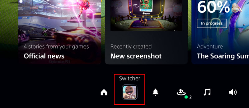 في البداية تم ملاحظة ظهور ايقونة مع عبارة Switcher تظهر في القائمة السفلية تحت قائمة “مركز التحكم” بين ايقونتي الواجهة الرئيسية والتنبيهات كما تشاهدون في الصورة بالاسفل, ربما بالضغط عليها يتم التحويل الى اللعبة الاخرى في المعلقة في وضع الانتظار.