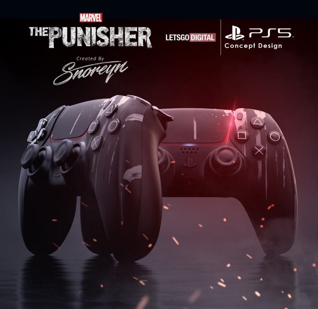لو قمنا بسؤالكم عن شكل ذراع Dualsense وجهازها بلايستيشن 5 في حال كانت نسخته تتبع لمسلسل نتفلكس المشهور The Punisher, هل ستعرفون الجواب يا ترى, حسنا الموقع المذكور قام بالمهمة بالنيابة عنكم واعطانا نظرة اولية عن هذه النسخة الخيالية والتصورية ادناه كما تشاهدون, الاسود مع اللون الأحمر يجتمعان معا ليشكلا جهاز لا مثيل له شكلا وهيئة ايضا.