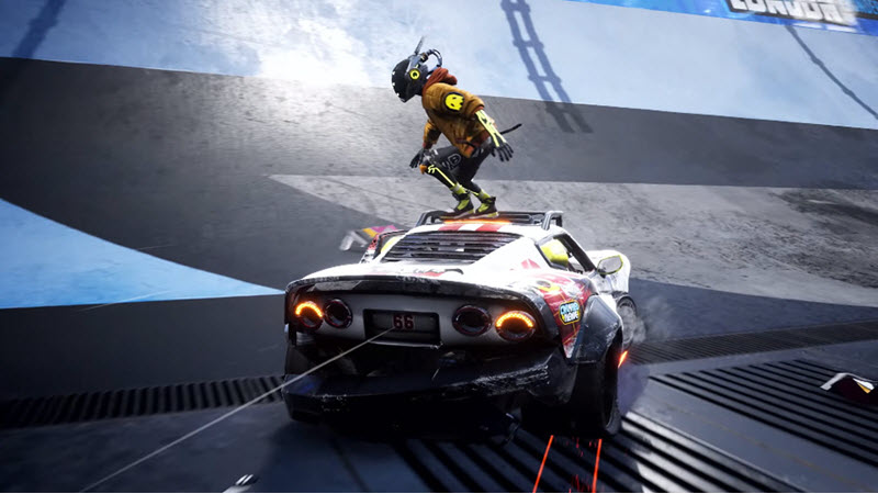 اللعبة تدمج ما بين حلبات السيارات التي يمكنها ان تتصادم وتدمر بعضها البعض وايضا الشخصيات التي يمكنها ان تخرج من هذه المركبات وتتباع اللعبة من خلال ازعاج اللاعبين المنافسين واحداث فوضة داخل الحلبة تتسبب في خسران بعض المنافسين مركباتهم.