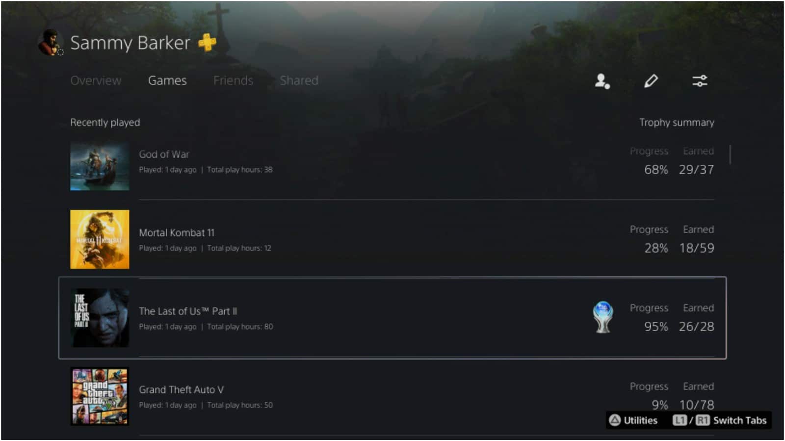بحسب موقع Push Square والذي وصف ان جهاز بلايستيشن 5 هو مستقبل عائلة اجهزة بلايستيشن, الجهاز سيكون قادرا على احتساب عدد ساعات اللعب التي قمت بلعبها في اي لعبة كانت, فكما تشاهدون ادناه الجهاز يبين عدد الساعات الملعوبة في كل من الالعاب الظاهرة في الصورة.