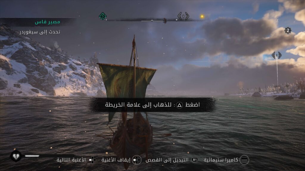 الكثيرون لا يستمتعون بالتنقل بين المهام سواء على ظهر الحصان او على الأقدام او حتى بالسفن خاصةً في حال كانَ الهدف بعيد. تحتوي Assassin’s Creed Valhalla على إمكانية السفر التلقائي إنما تحتاج لشرح قصير. عندما تكون في القارب، هناك خيار يدعى تتبع الساحل او النهر وعندما تفعله ستتجه السفينة بالاتجاه اللذي كنت انت فيه، أيّ ليس باتجاه الهدف.