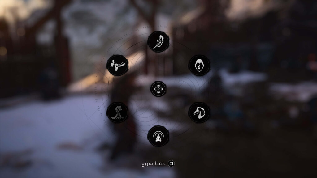 هنا يمكنك مناداة حصانك والتأمل واستخدام الشعلة ولكن بالأسفل سترى خيار الضغط على زر الحفظ السريع مما سيحفظ تقدمك الحالي. بالأسفل يمكنكم رؤية القائمة التي ستظهر بالإضافة إلى الخيار.