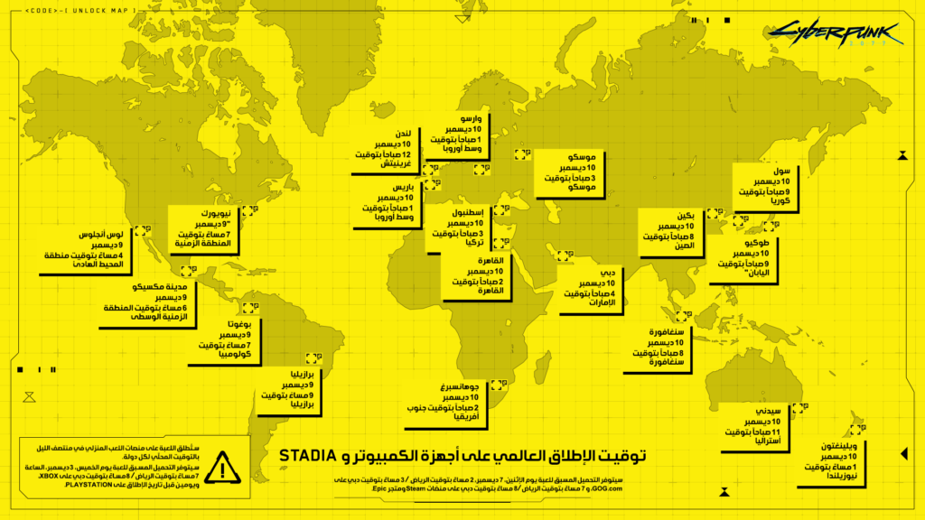 مواعيد فتح لعبة Cyberpunk 2077 في بعض المناطق العربية