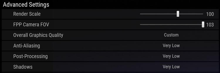 - FPP Camera FOV = اختر 103 ويفضل هذا الاعداد محترفي اللعبة بشكل خاص، حيث يزيد أو ينقص من مجال الرؤية المحيطة