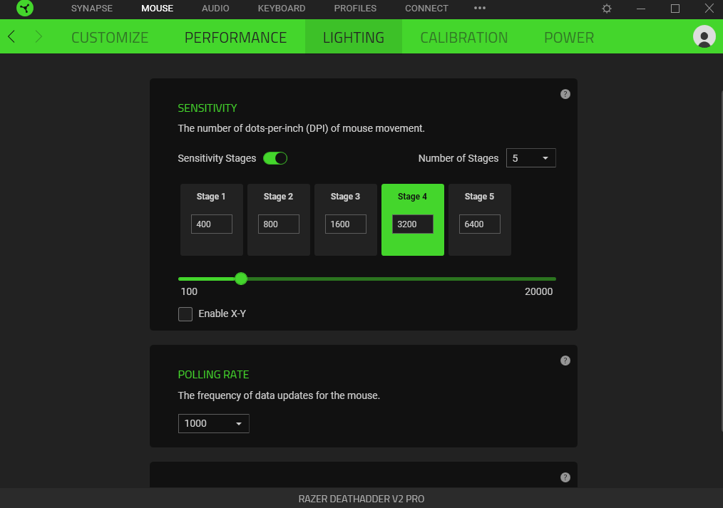 يمكنك أيضاً أن حفظ إعداداتك على الفأرة عبر برنامج Razer Snyapse الذي سنتحدث عنه بالأسفل. مثلاً، يمكنك إعداد حساسيات مختلفة والتغيير بينها بسهولة خلال الألعاب. هذا الأمر مفيد في حال كنت من الأشخاص الذين يخصصون إعدادات لكل لعبة.