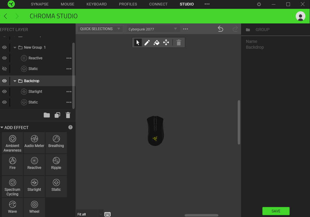 أيضاً يمكنك تخصيص الإضاءة بالشكل الذي تريده واستخدام أنماط إضاءة مختلفة او تحميل أنماط إضاءة من الانترنت من إنشاء مستخدمين آخرين. هذا ما فعلته انا حيثُ قمت بمزامنة لوحة المفاتيح Blackwidow V3 Pro مع DeathAdder V2 Pro وحصلت على النتيجة التالية.