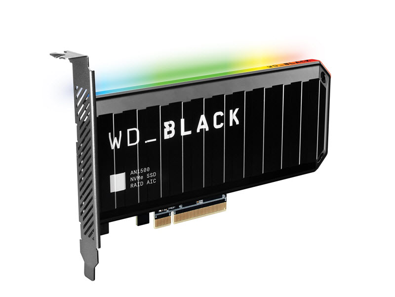 بطاقة WD_BLACK AN1500 NVMe SSD Add-in-Card – عيشوا تجربة لعب فائقة السرعة بفضل هذه البطاقة الإضافية القابلة للإقلاع والجاهزة للتشغيل والتي تحقق سرعات هائلة بأقل مجهود. تتضمن هذه البطاقة تقنية إضاءة RGB القابلة للتخصيص (نظام Windows فقطبالإضافة إلى مبدد الحرارة).