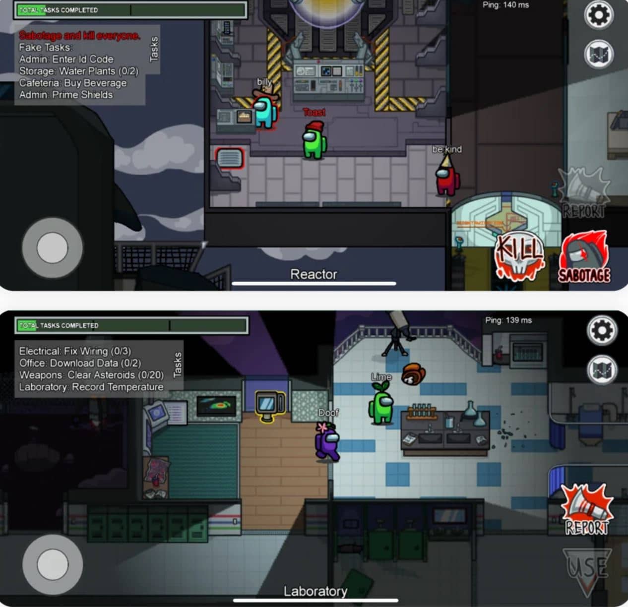 وهم عبارة عن رواد فضاء أشكالهم لطيفة للغاية وملونة بألوان زاهية، على شكل حبات فول صغيرة، ومعظم أفراد الطاقم هم زملاء ماعدا واحد أو إثنين من “المحتالين” يقومون بإنهاء المهمات الموكلة إليهم، ويحاول المحتالون قتل أفراد طاقم السفينة بشكل سري، او إفساد المهمات دون الكشف عن هويته.