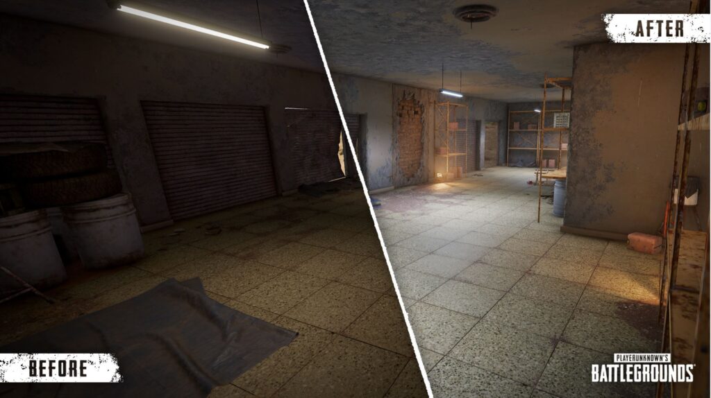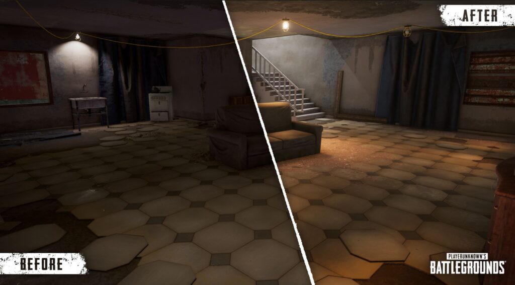 ومن ضمن التحسينات التي حصلت عليها لعبة PUBG من خلال التحديث 10.3 خاصة خريطة كراكن “Karakin” هي تحسينات كبيرة على مستوى الرسوم والإضائة كذلك حيث تم التركيز على تحسين نظام انتشار الضوء بشكل عام كما هو موضح في الصورة، والذي سيمنح كل منطقة درجة معينة للإضائة الخاصة بها، بالإضافة الى حصولها على مجموعة من الإصلاحات العامة للأخطاء في أرجاء الخريطة من أجل تحسين تجربة اللعبة.
