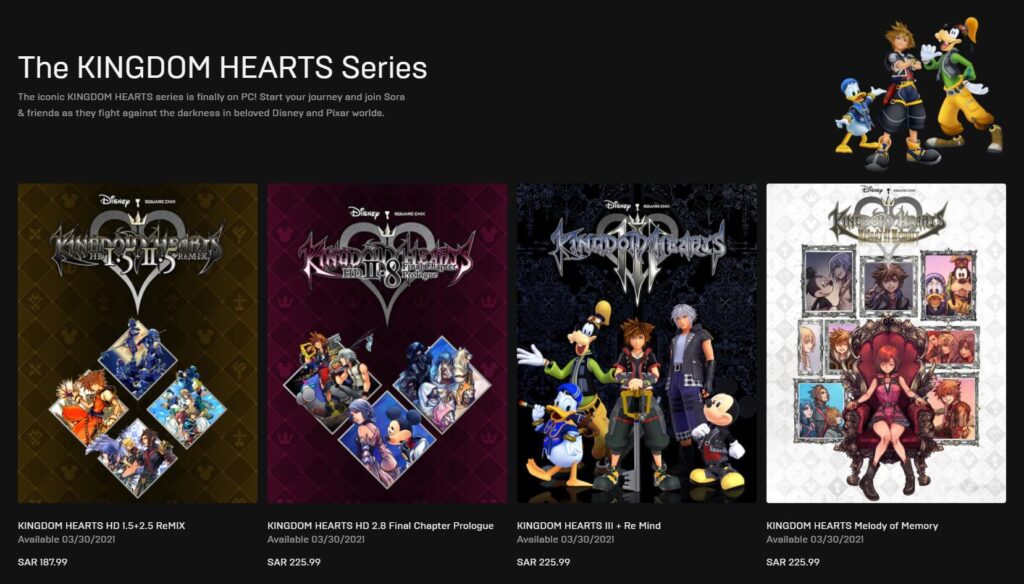 سلسلة Kingdom Hearts هي من السلاسل العريقة المحبوبة على الأجهزة المنزلية حيثُ تحتوي على تقاطع بين شخصيات ديزوني وسكوير إنيكس ولهذا السبب تعتبر اللعبة قريبة لقلوب اللاعبين. طالما كانت هذه السلسلة بعيدة عن الحاسب الشخصي ولكن في السنين القليلة الماضية، رأينا توجه الكثير من الألعاب إلى الحاسب الشخصي والبارحة علمنا إنضمام السلسلة لهم.
