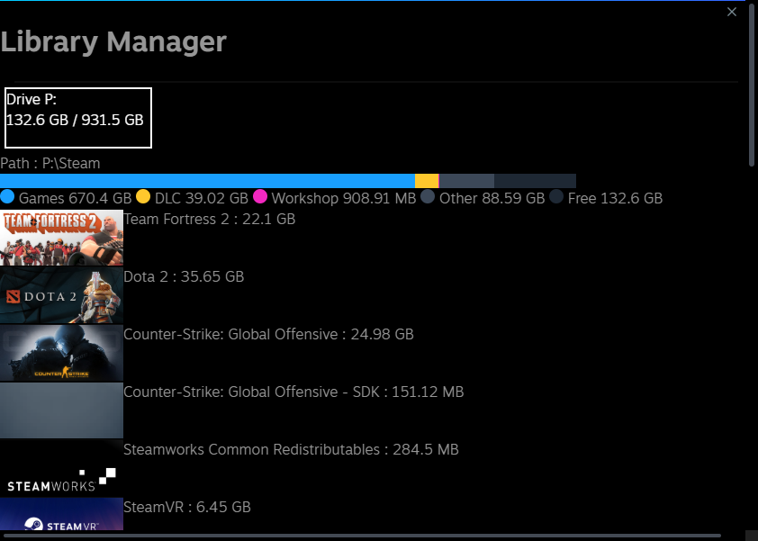 متجر Steam في الوقت الحالي لديه الحل من خلال أداة مخفية توفرت خلال التحديث الأخير، والتي تشبه الى حد ما مكتبة الألعاب تلك الموجود على جهاز بلايستيشن 4 من حيث إظهار المساحة الشاغرة على القرص الصلب لديك، وحجم تثبيت ملفات الألعاب.